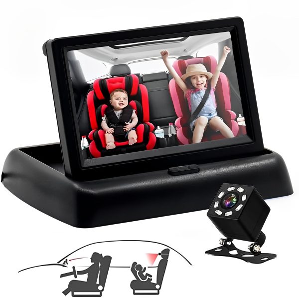 - ADJUSTABLE ANGLE – you can adjust the camera angle up and down to fit your car model and the size of the car safety seat.