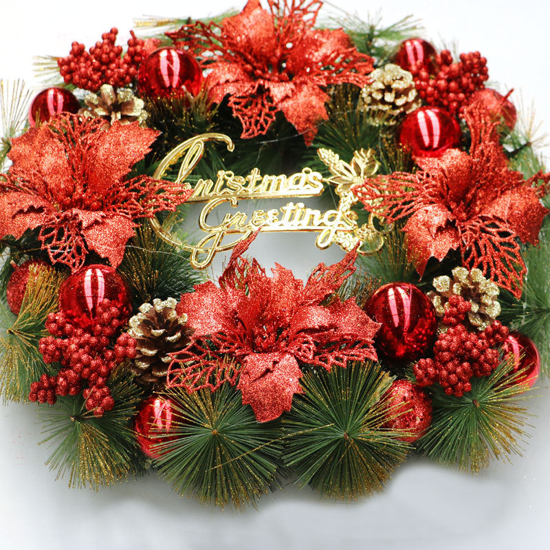Great for Christmas holiday decoration,there are a variety of baubles, pine cones and berries interwoven in the wreath some with glitter finishes. This cute front door wreath is a perfect gift for your friends and family on Christmas day and any other festival. It brings a Christmas atmosphere.