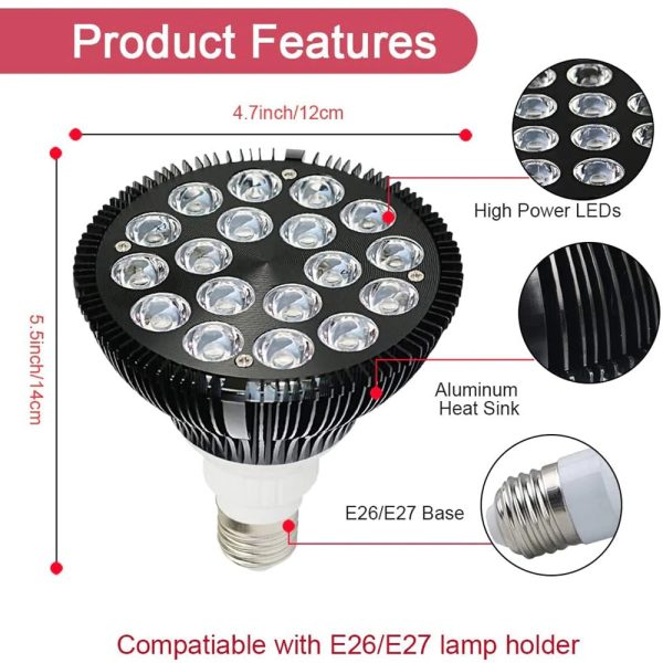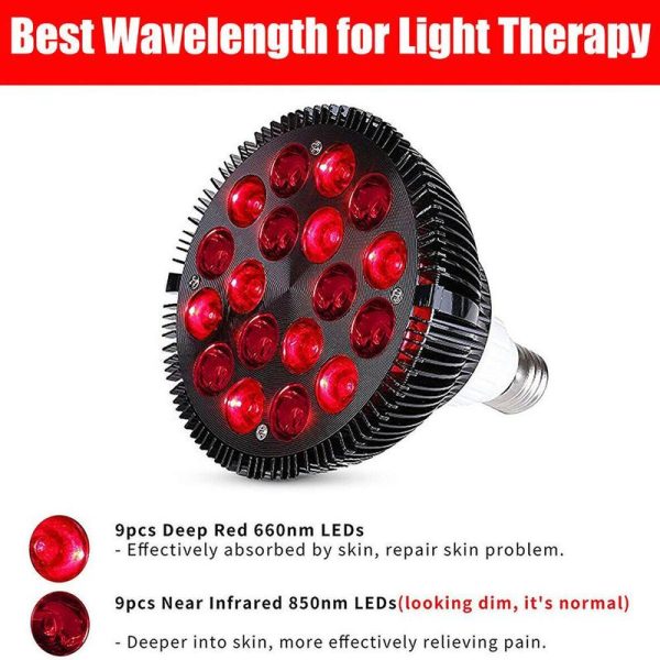BEST COMBO – Each therapy light bulb has 18pcs high power leds in total. 9pcs 660nm deep red leds + 9pcs 850nm near infrared leds making it the best wavelength for light therapy. Infrared light is invisible, so when using this light, only half will light.