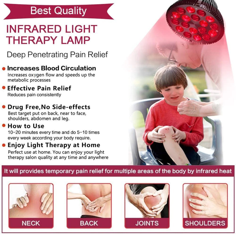 UPGRADED RED LIGHT THERAPY LAMP – Red light therapy will help you overcome chronic or acute pain, arthritis, back pain, joint pain, tendonitis, etc. by increasing circulation, boosting your well-being and bringing further positive effects. It’s easy, safe and painless, no side effects or risk of infection. Can be combined with any other pain treatment.