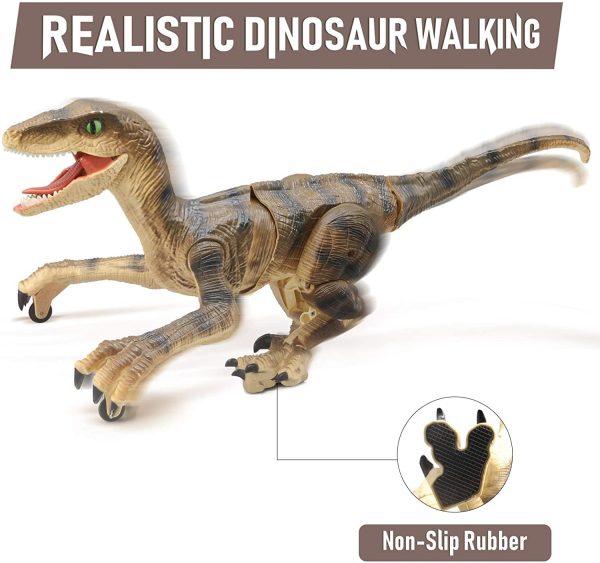 - VIVID DINOSAUR FIGURE – Super real walking and sound with flexible movement give kids an incomparable experience. Playing with this fantastic remote control dinosaur will bring your kids back to ancient times and start a wonderful prehistory journey. At the push of a button, this fantastic remote control toy robot dinosaur will raise its legs and walk like a real dinosaur.