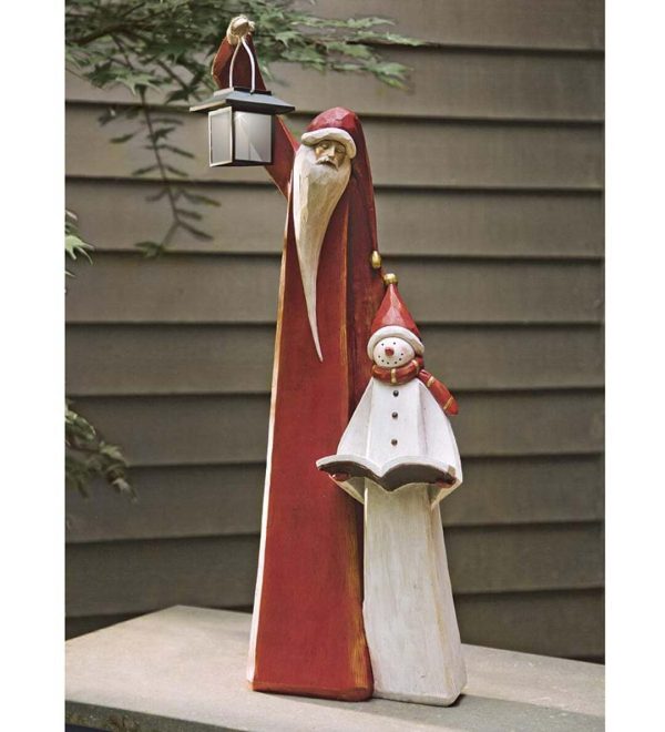 Hark! Our Santa and Snowman Sculpture with Solar Lantern is a warm, enchanting addition to your indoor or outdoor holiday decorations. Crafted from wood-like resin for a hand-carved look, Santa is lighting the way with his lantern for his snowman friend while he carols from door to door.