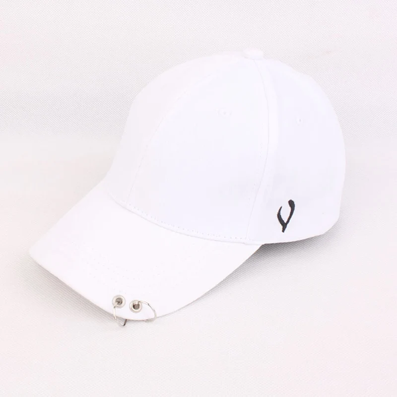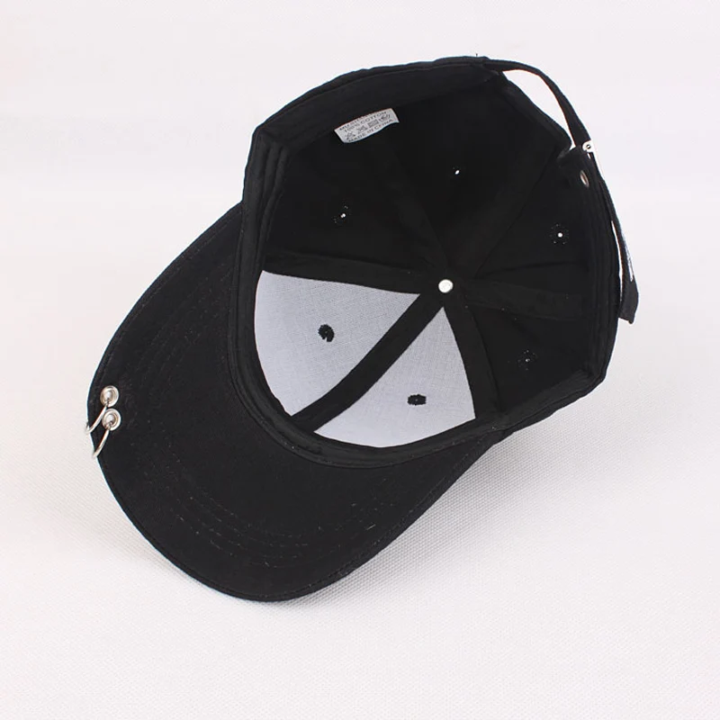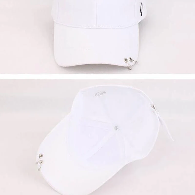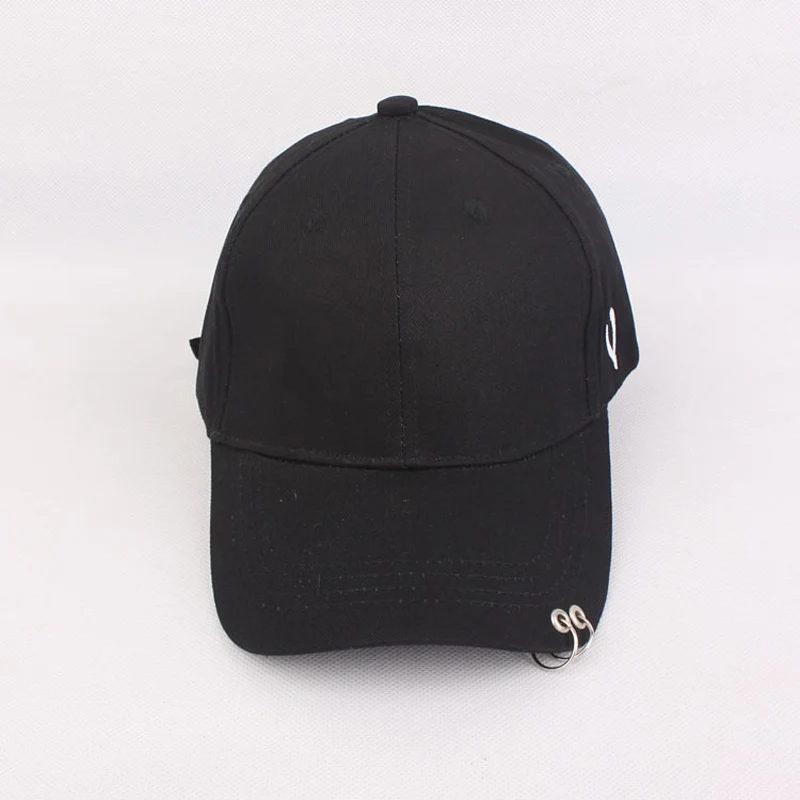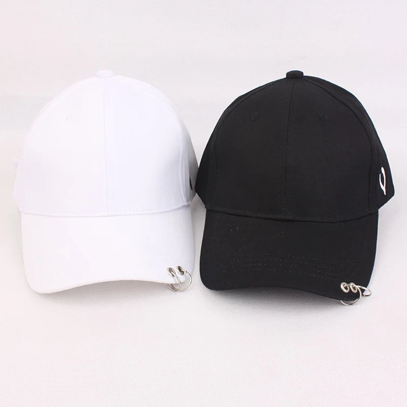 Solid Men Women Baseball Cap with Metal Ring Adjustable 6 Panel SnapBack Gorras Hip Hop Style Fashion Street Black White Hat Cap