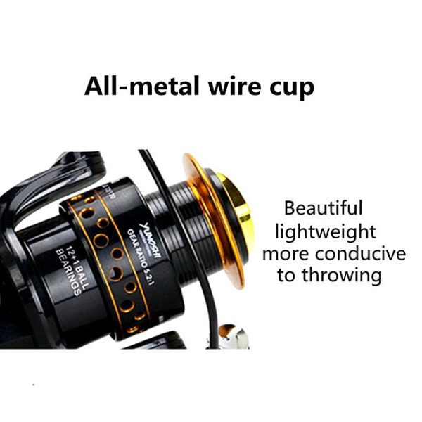 - GREAT VALUE – With an interchangeable right or left-handed handle you will be flattered by having this sharp and modern spinning fishing reel. Loaded with features: wire cup metallic, main metallic, rough throwing line configuration, rocker sleeve folding metal, rocker arm metallic and soft rubber handle. Our Fishing Reel turns any angler into a PRO.