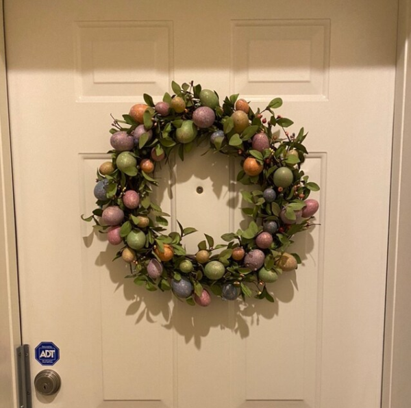 This Easter wreath is absolutely perfect! It looks more beautiful. I love the color of the eggs, they come in different sizes and the greenery is just right! It will be beautiful hanging on my front door this spring.