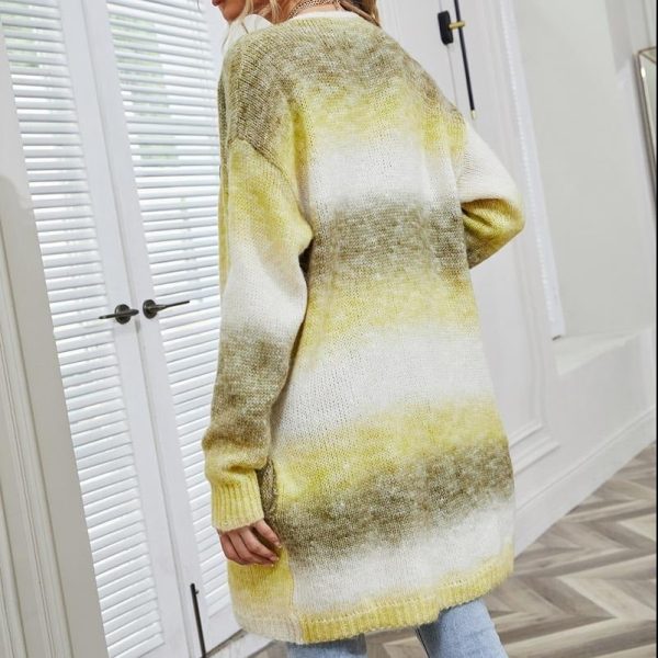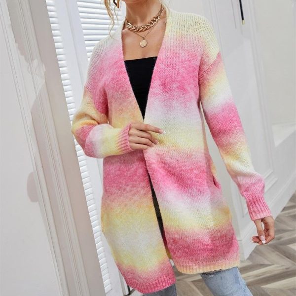 Stripe Rainbow Tie-dye Mid-length Cardigan Sweater Women’s Loose Knitted Jacket