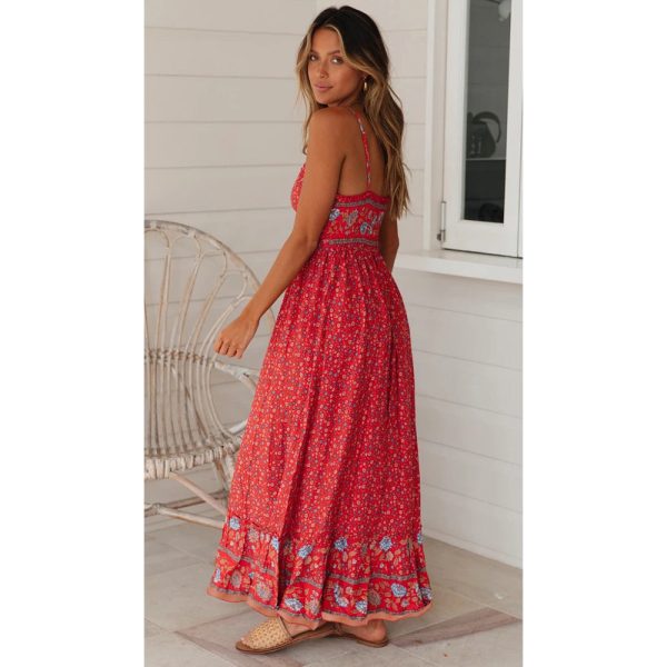 Sway into Summer: Bohemian Floral Maxi Dress with a Flattering V-Neckline