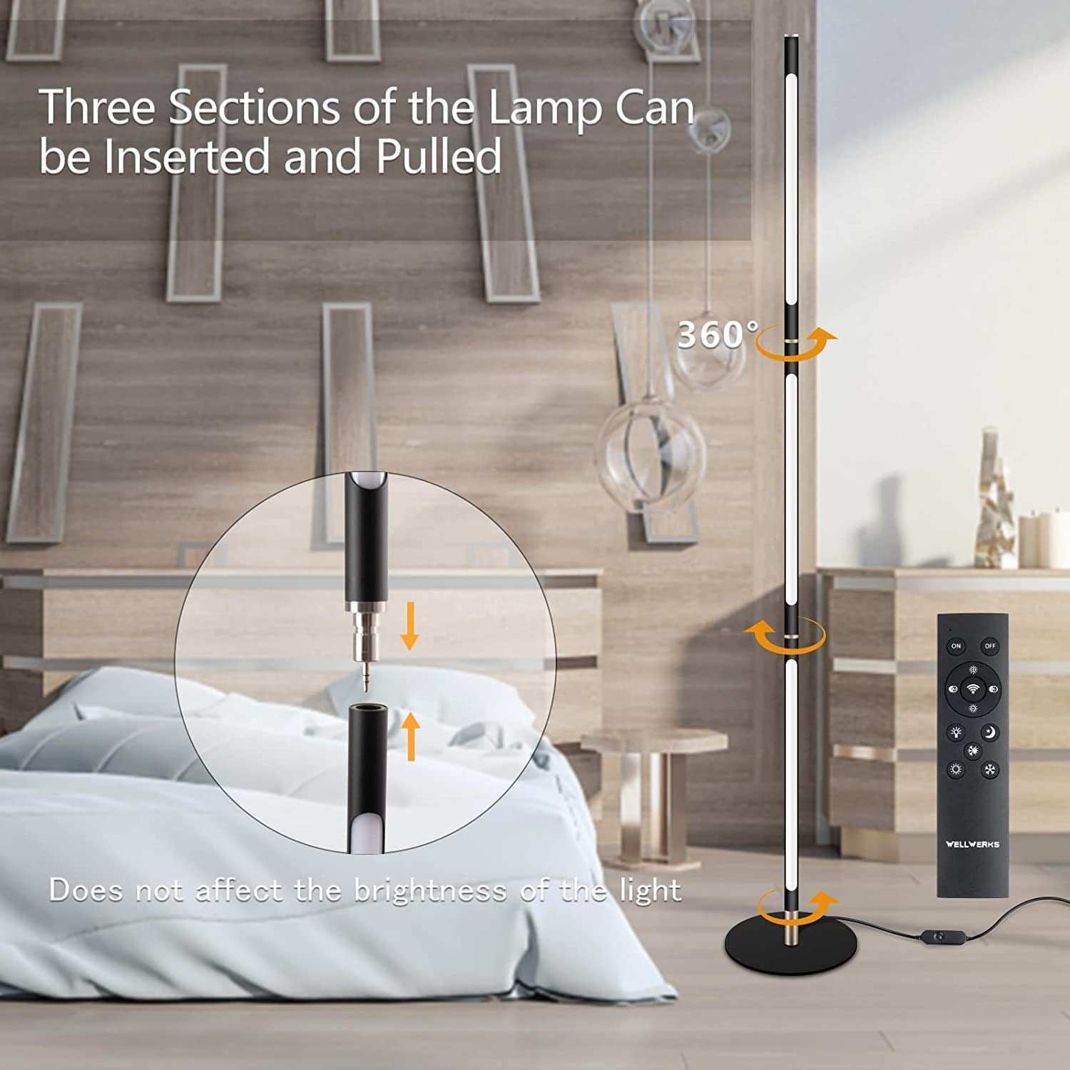 This black floor lamp, though different from most floor lamps on the market, has an up-to-date modern look, which makes it a great selection for use in many places, such as office lamps, reading lamps, living room lamps, bedroom lamp. You’re able to change the 3 sections of the lamp independently.