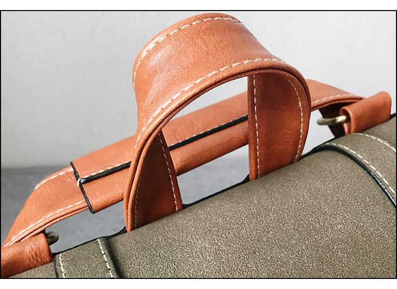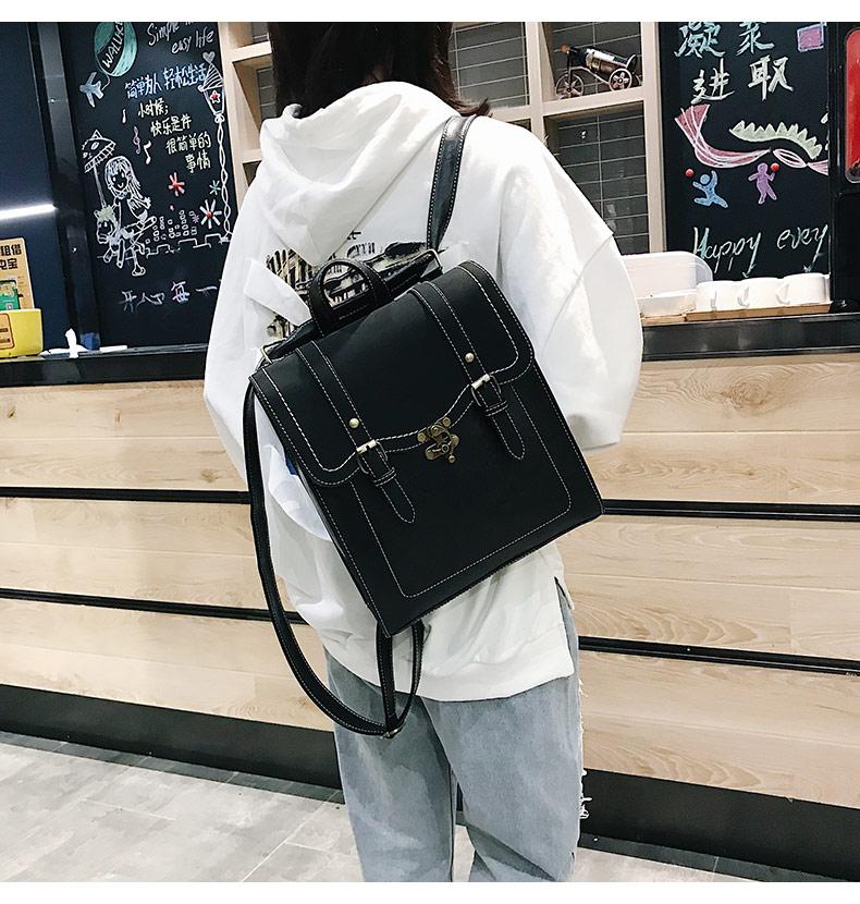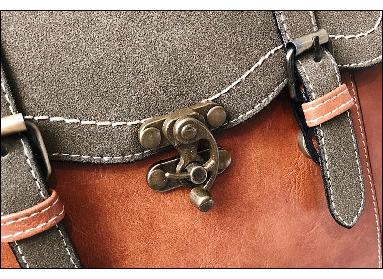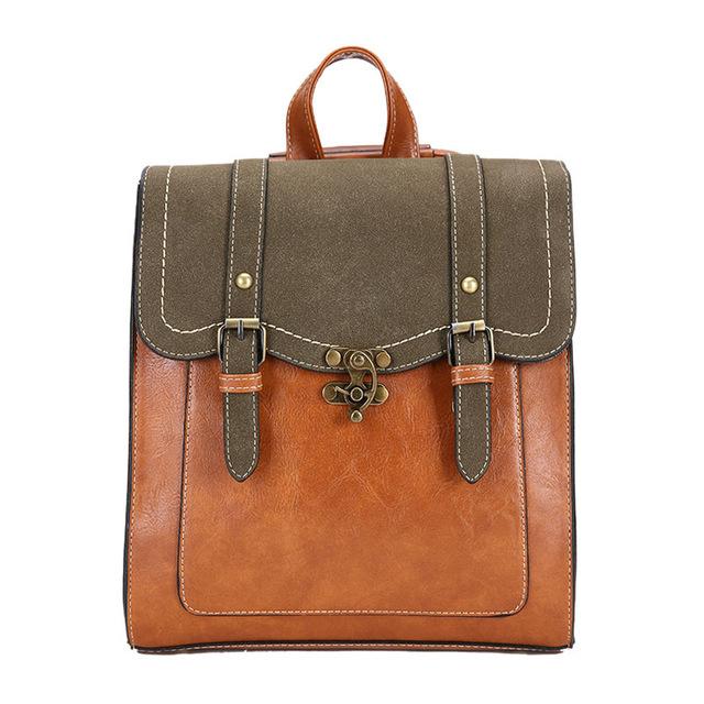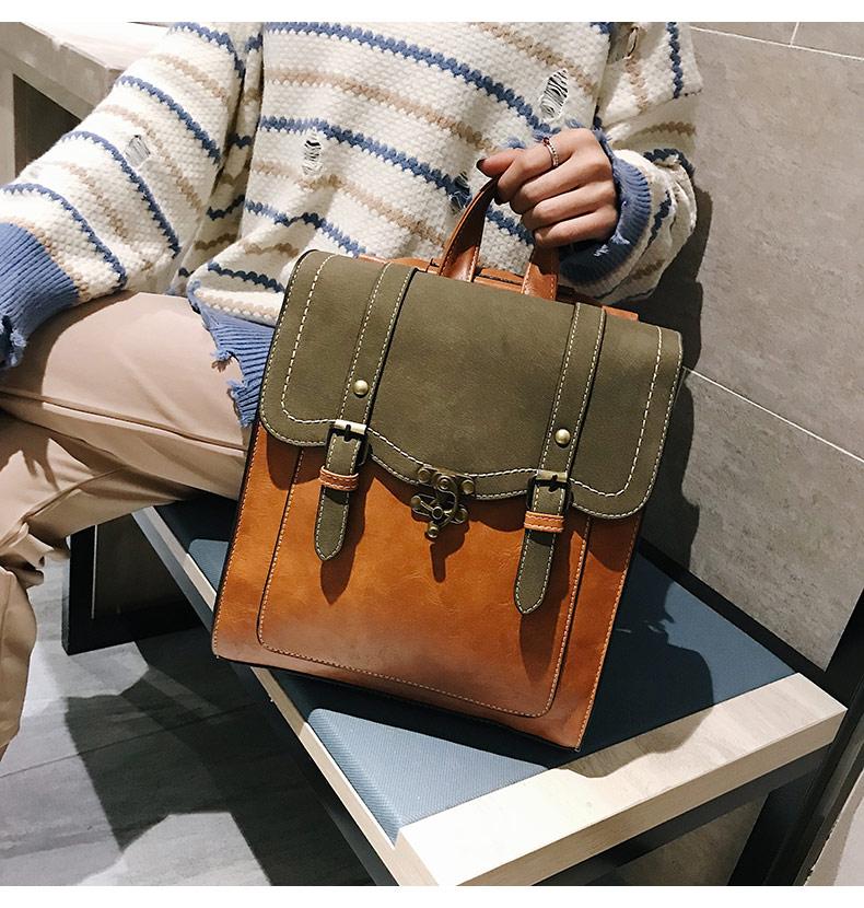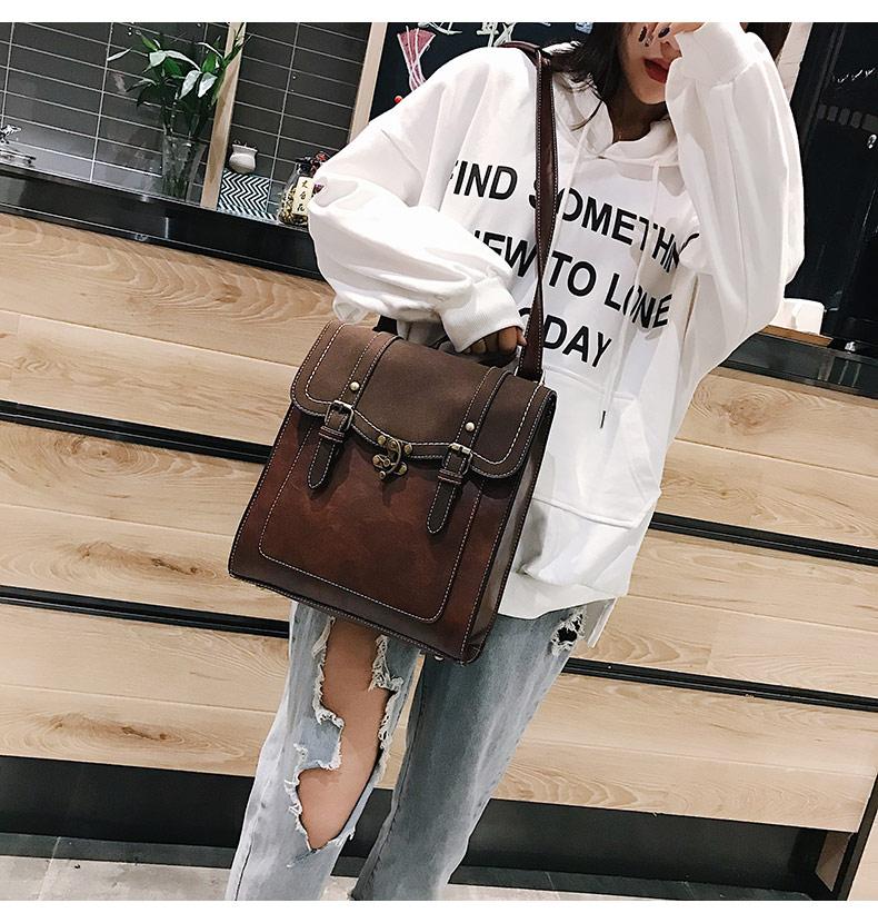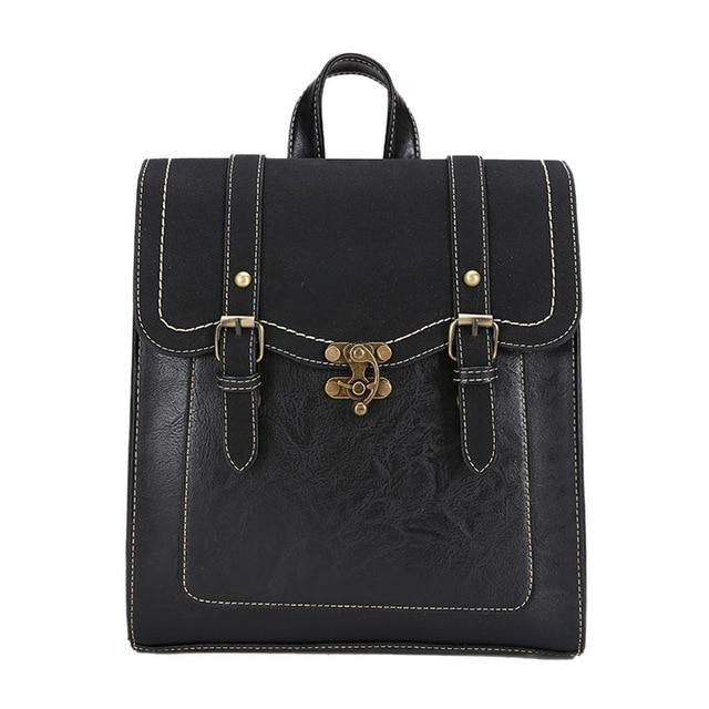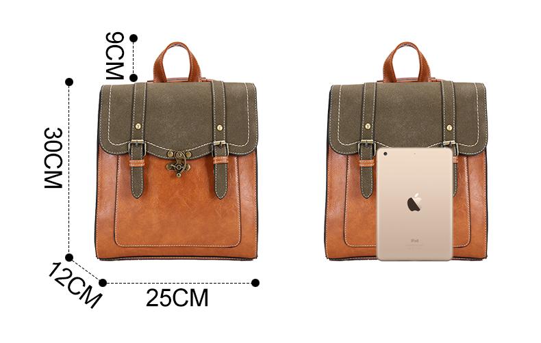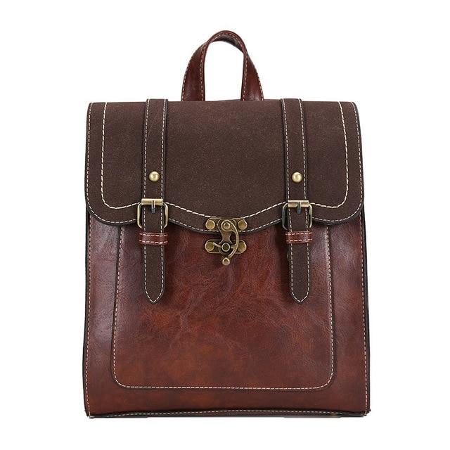 This popular vintage style backpack comes in 3 smart colors, Brown, Coffee and Black, each with a stylish metallic glasp and beautifully stitched buckles.