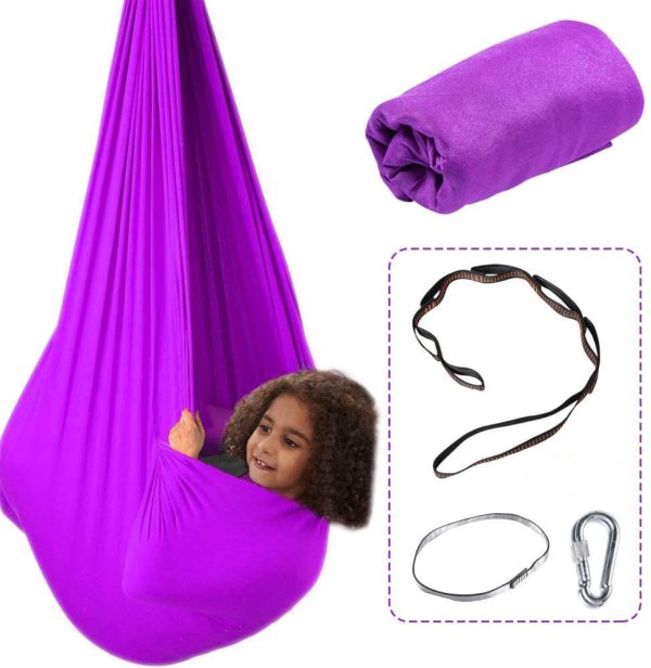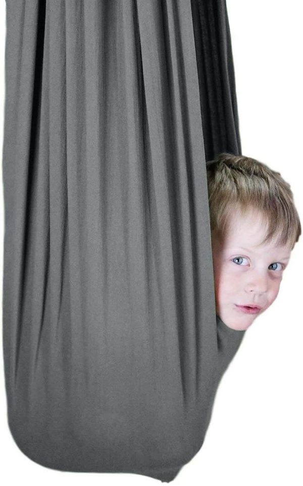 UPDATED SEPTEMBER 2019 – NEW AND IMPROVED SIZE AND FABRIC: Can now easily hold up to 150 lbs and wont stretch to the ground. Your child will be more completely enveloped in the swing make for a better sensory experience!