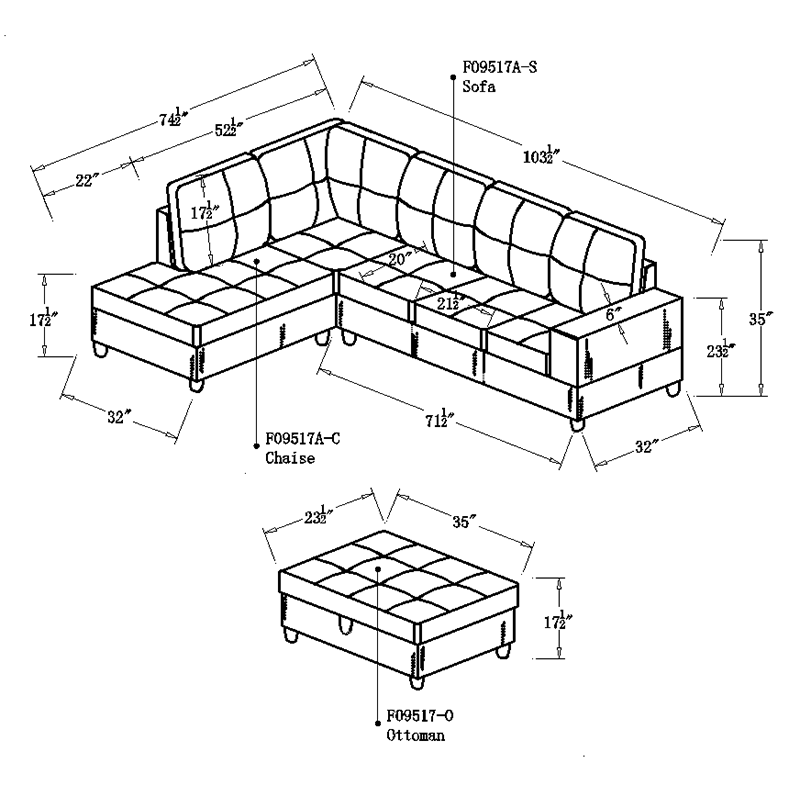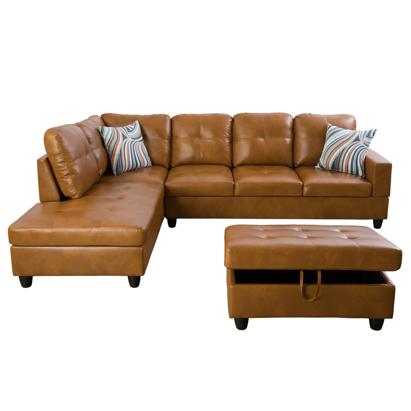 Traditional yet stylish. Designed in the classic that complements any contemporary home, this sectional is wonderfully versatile. Upholstered in faux leather fabric and featured in tufted back cushions offer equal parts traditional design and luxurious comfort. Checked-pattern toss pillows complete this look for the style that feels right at home. More than just stylish, the ottoman also features hidden interior storage to bring an organizational appeal to your space.
