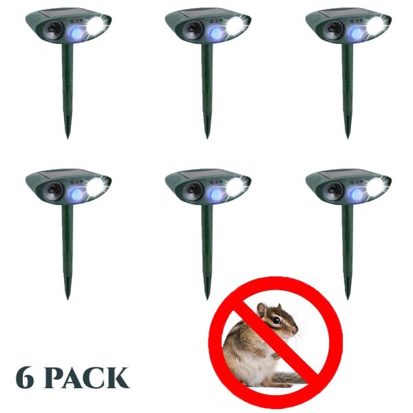 - ENVIRONMENTAL FRIENDLY AND EASY TO USE: Naturally drives chipmunks and other animals out without killing them. Made of anti-UV and waterproof material, suitable for all weather conditions. SOLAR energy technology, charge itself under sun, wireless and rechargeable. Don’t worry about getting new batteries anymore! Repeller features FLASHING light to scare the animals.