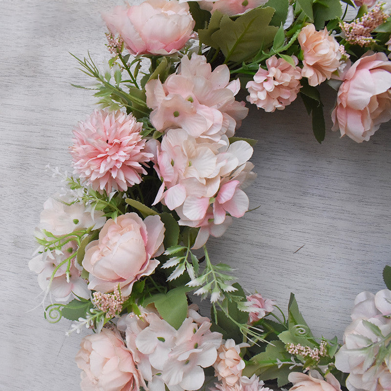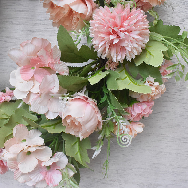 Valentine Wreath Pink Hydrangeas and Roses Elegant Spring Floral Wreath