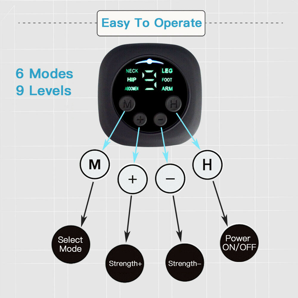 - LCD Display Controller: The product has 6 modes and 9 intensity levels. The mode and intensity are displayed on the LCD screen, you can check the working condition (pattern type, pace intensity), and enjoy training more safely and clearly.