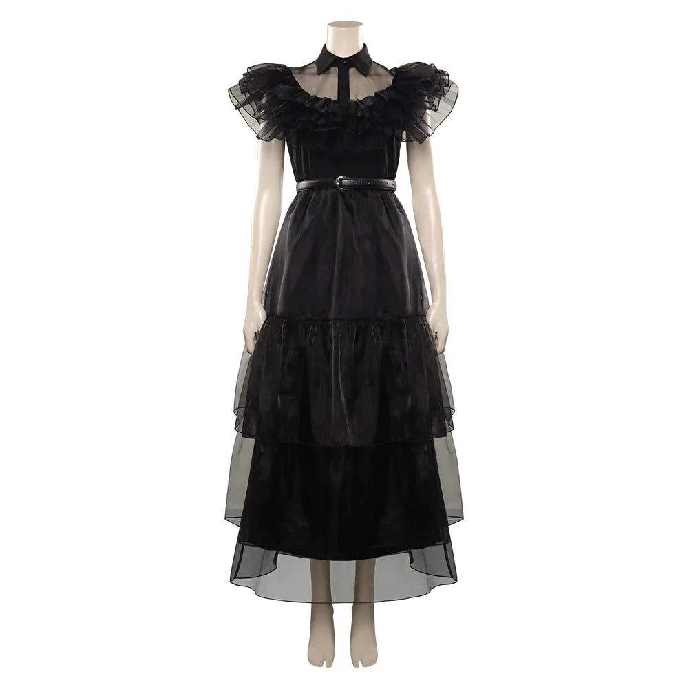Step into the world of the Addams Family with this Wednesday Addams cosplay costume. Perfect for Halloween, carnival parties, or just dressing up for fun, this costume will transform you into the iconic gothic character.