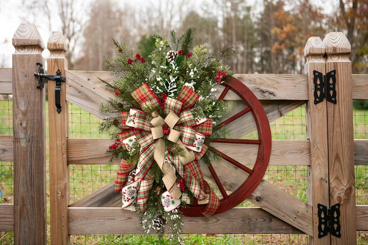 🎄Material: ribbon, fabric,wagon wheel,pine,berries