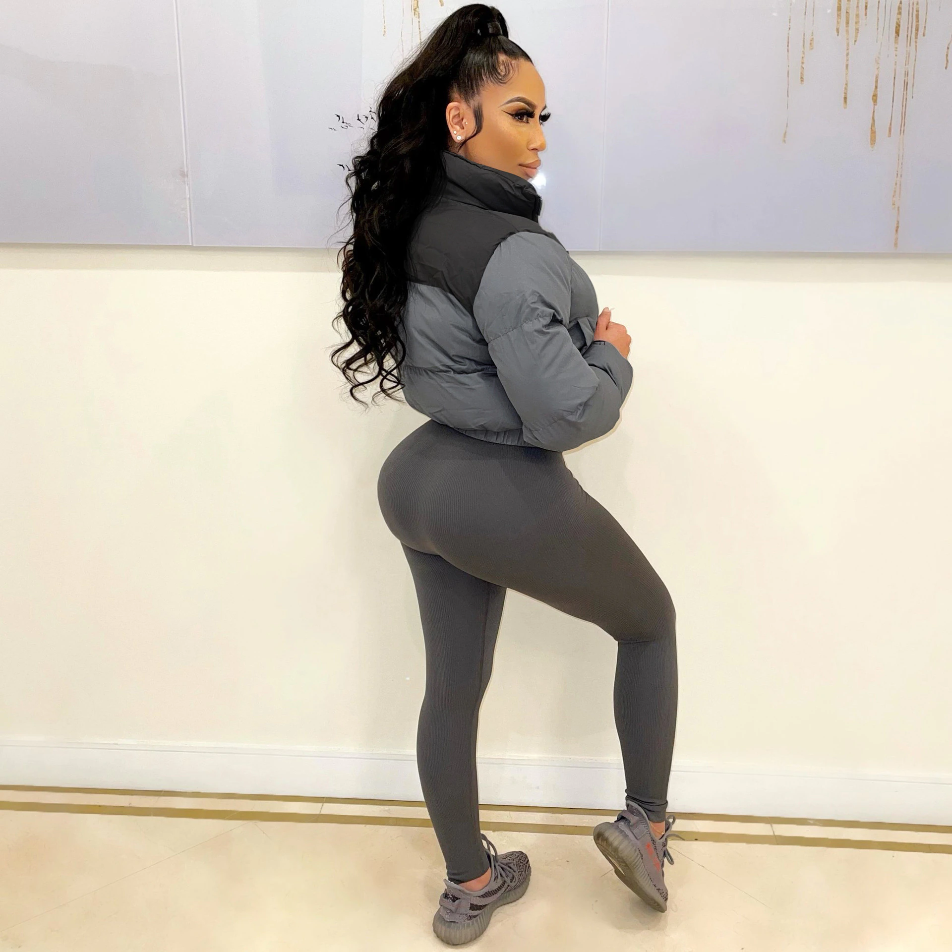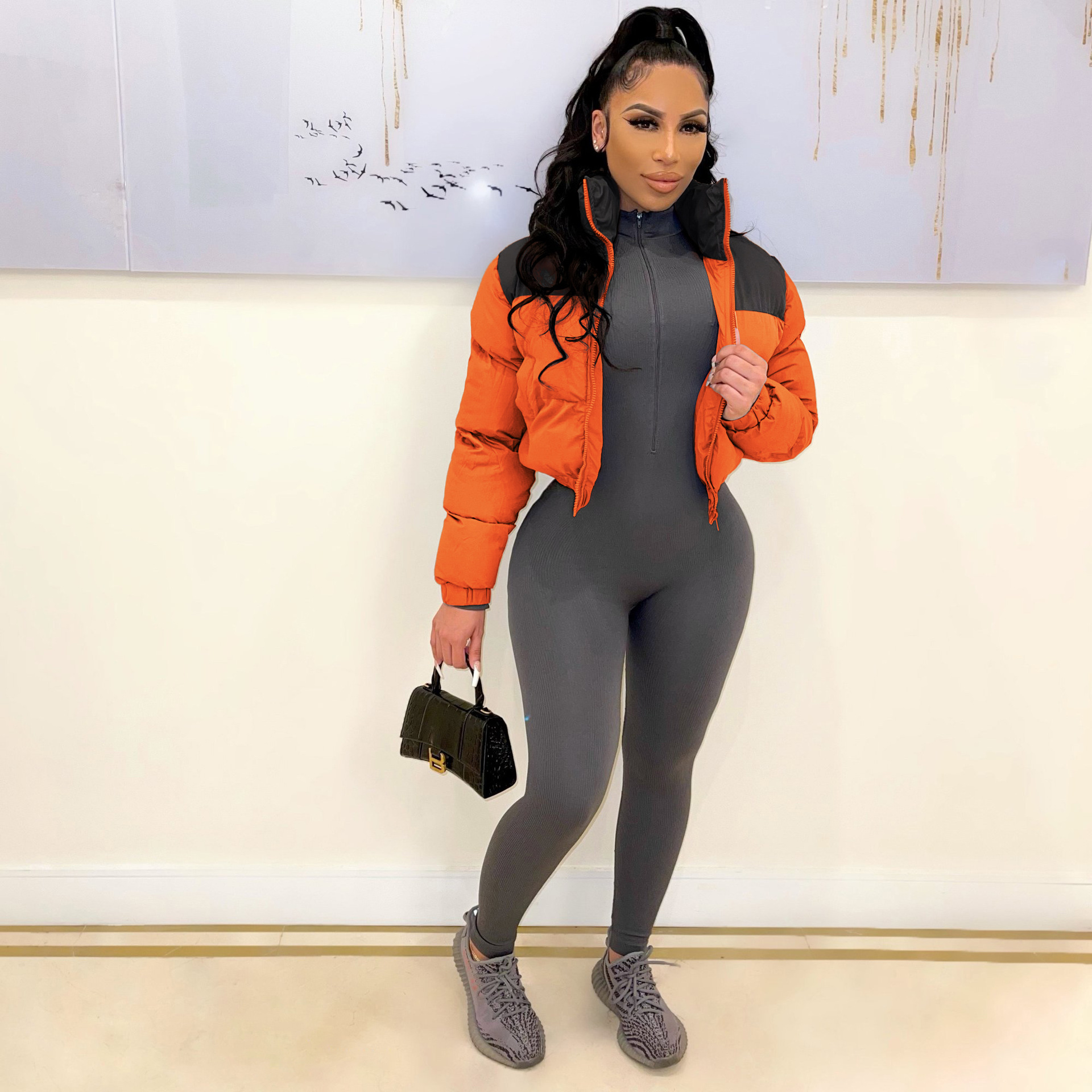 Women Cotton Padded Coat Puffer Parka Outwear Cropped Jacket