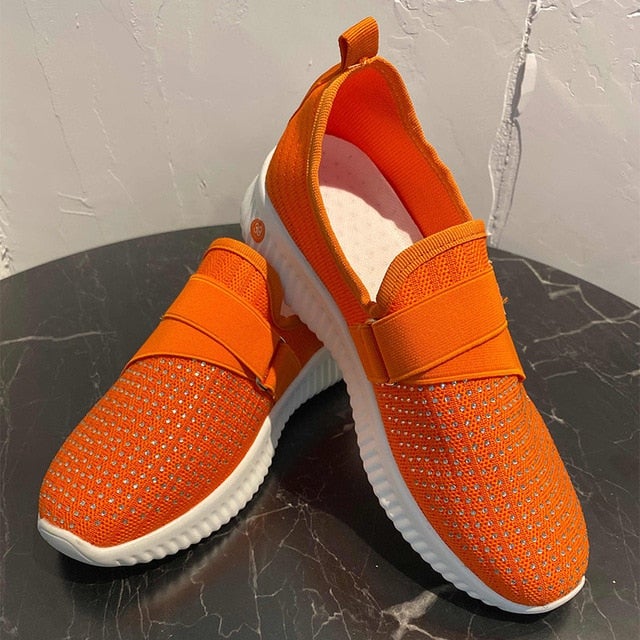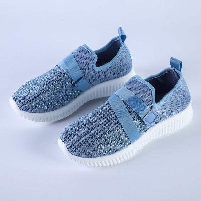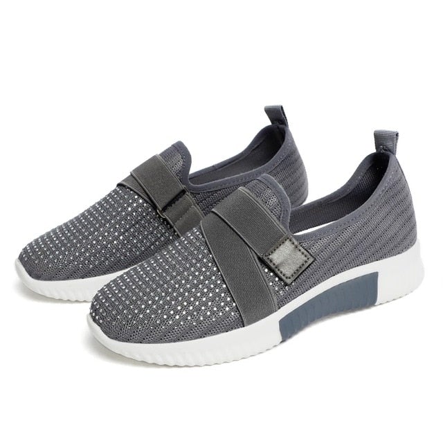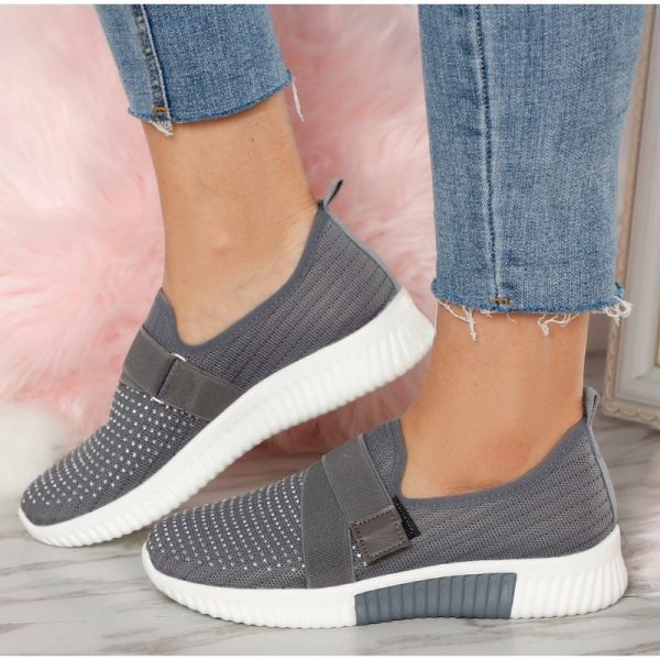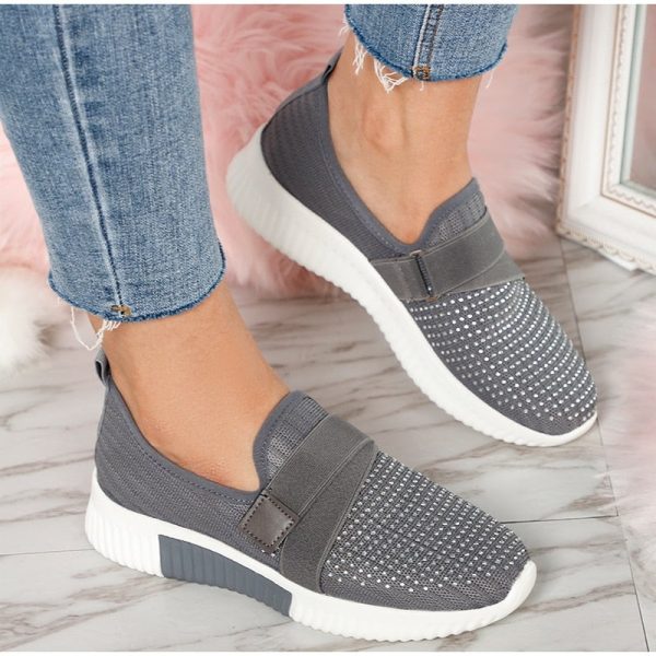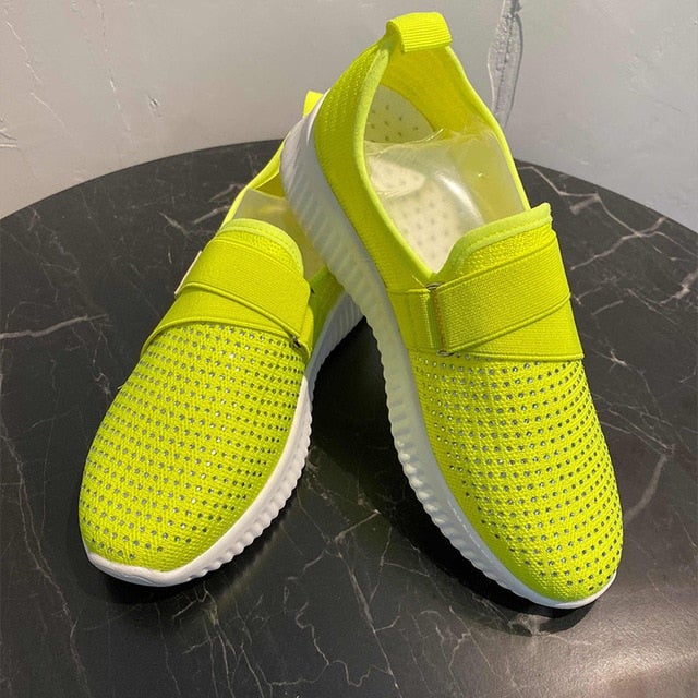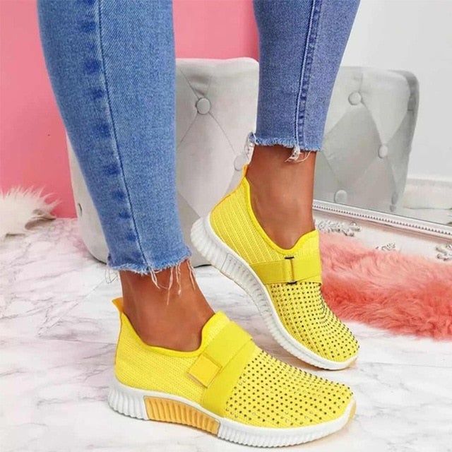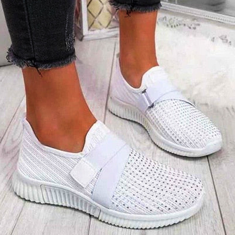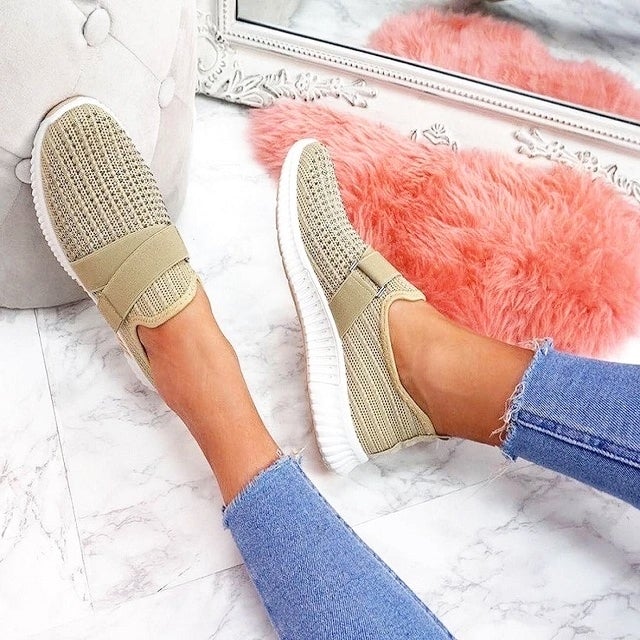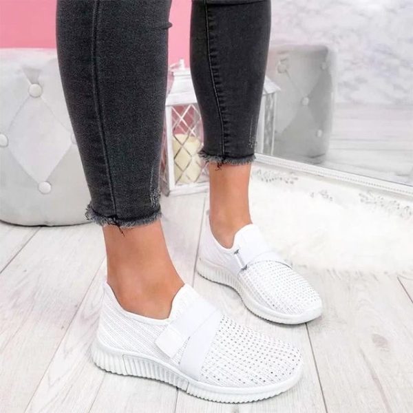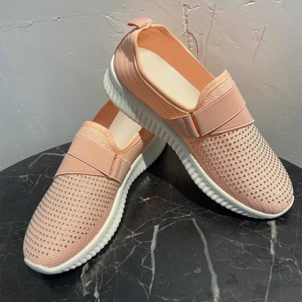 Women’s Casual Mesh Flats, Ladies Vulcanized Breathable Slip On Shoes