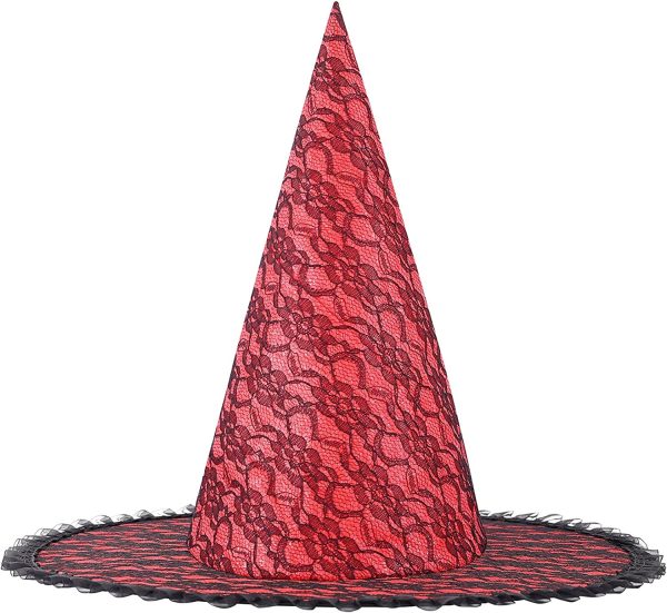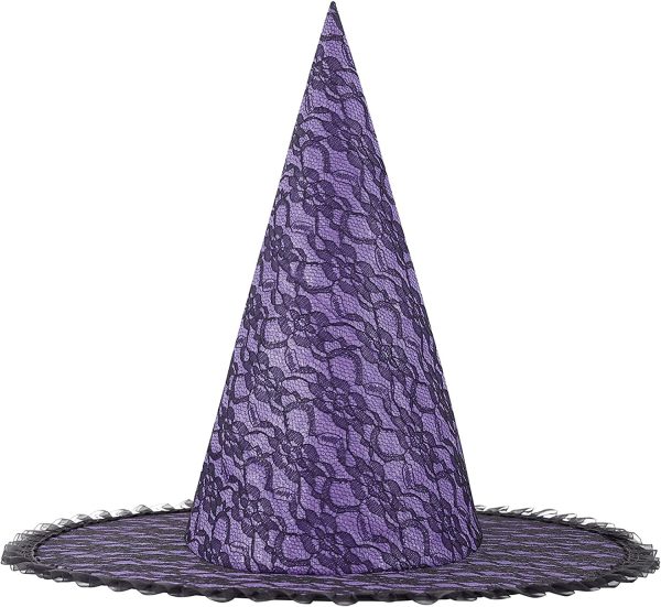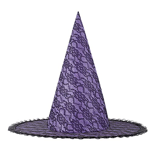 - ★Interesting Design: The witches hats for women is designed with lace overlay, tulle encircles the hat, cobweb pattern, see-through mesh splice edge, sequins, lace veils, triangle cap tip, basic style. Good to add Halloween atmosphere,make you more unquie and beautiful, will leave unforgettable memory for you.