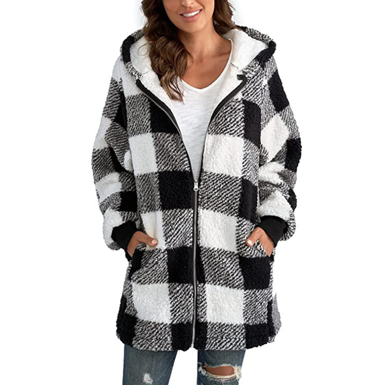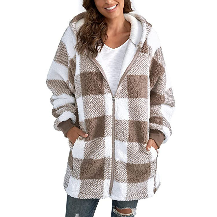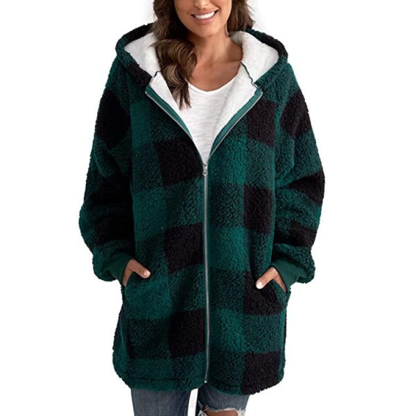Be the first to review “Women’s Hoodie Plaid Loose Overcoat”