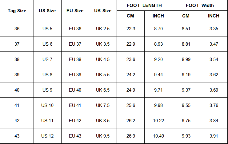 (*Shoes in order to prevent from walking easily fall off, the number of yards will be smaller, please consider choosing a larger size.)
